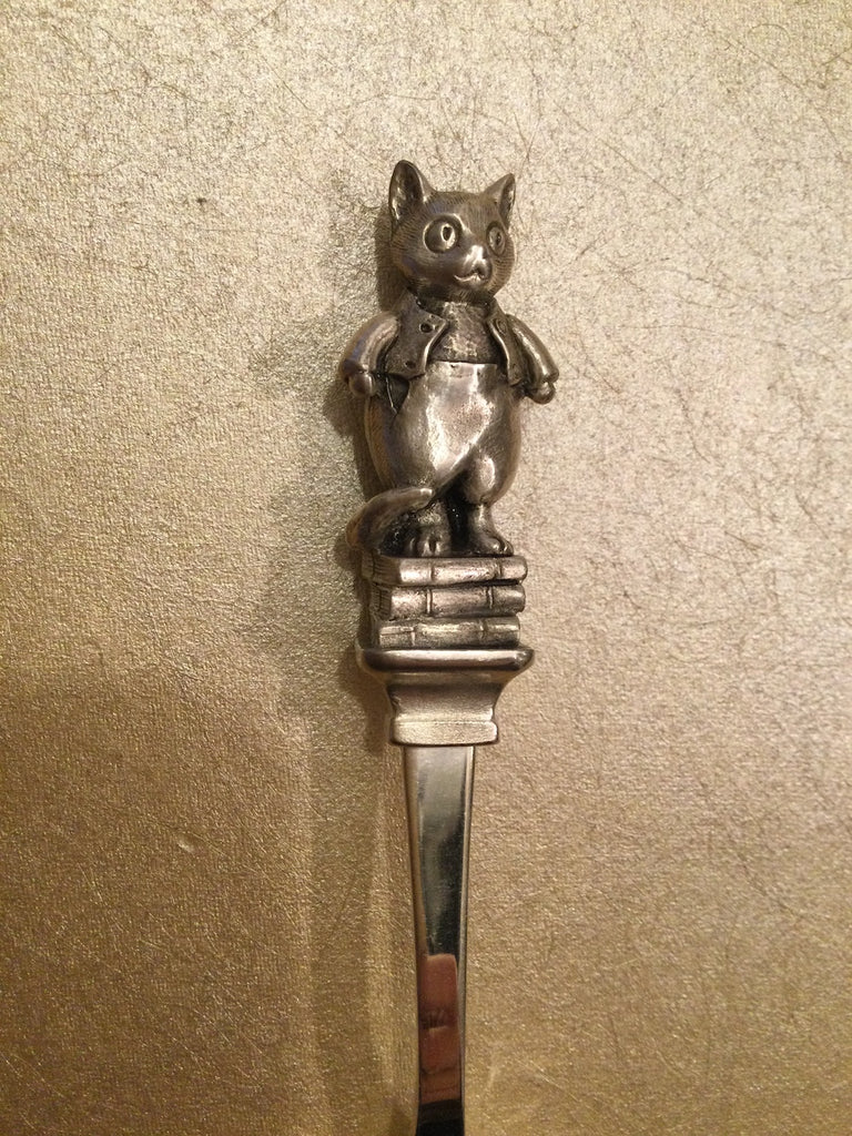 These were manufactured by Reed & Barton Silversmiths for The New England Collectors Society in the 1980's. Each spoon is crafted from silverplate with a pewter figure on the top of the spoon handle.