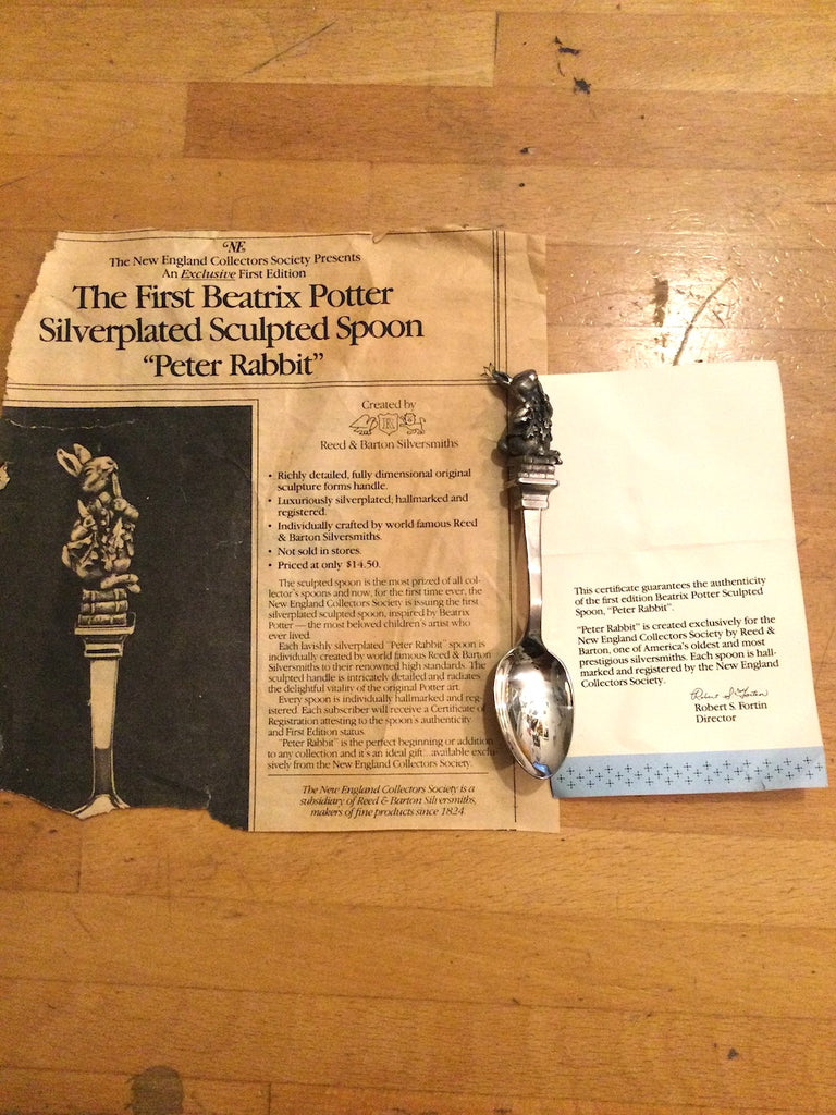 Peter Rabbit comes with a certificate of authenticity as well as a piece of newspaper from the 80's in which the spoon was featured.