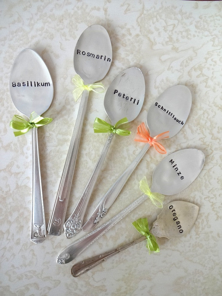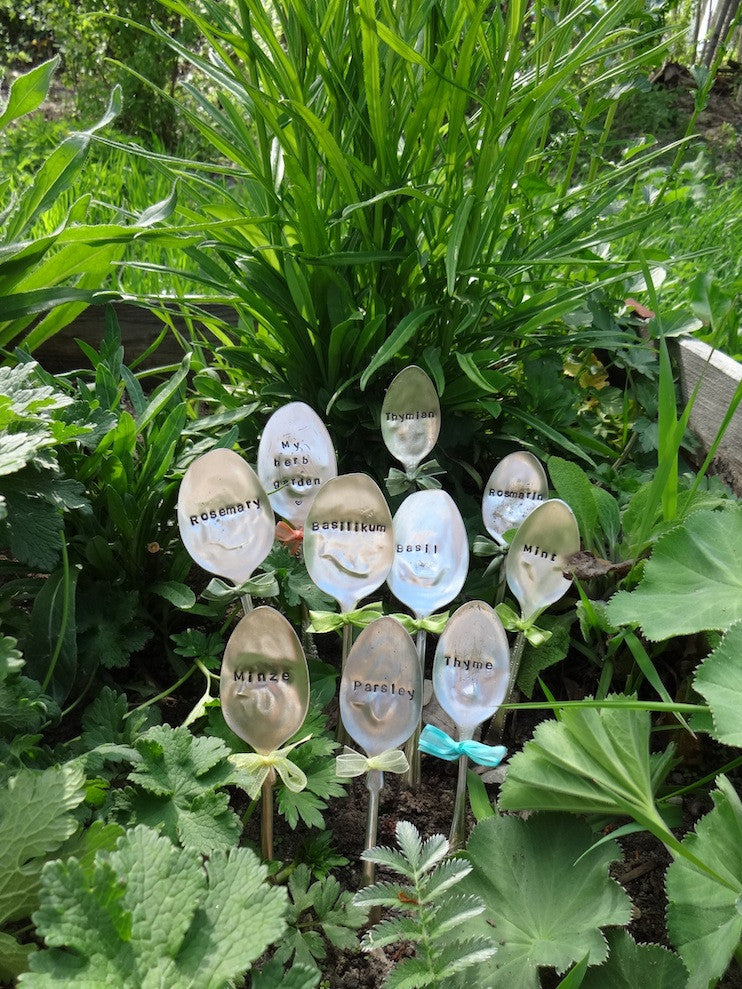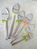 The set comes with a mix of 6 flattened spoons with personalized herb and plant names - just write what you would like in the box after you have put them in the cart!